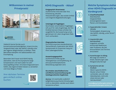 Planen Sie für eine ADHS-Diagnostik 3 Termine ein, wobei ein Termin vor Ort stattfinden sollte.